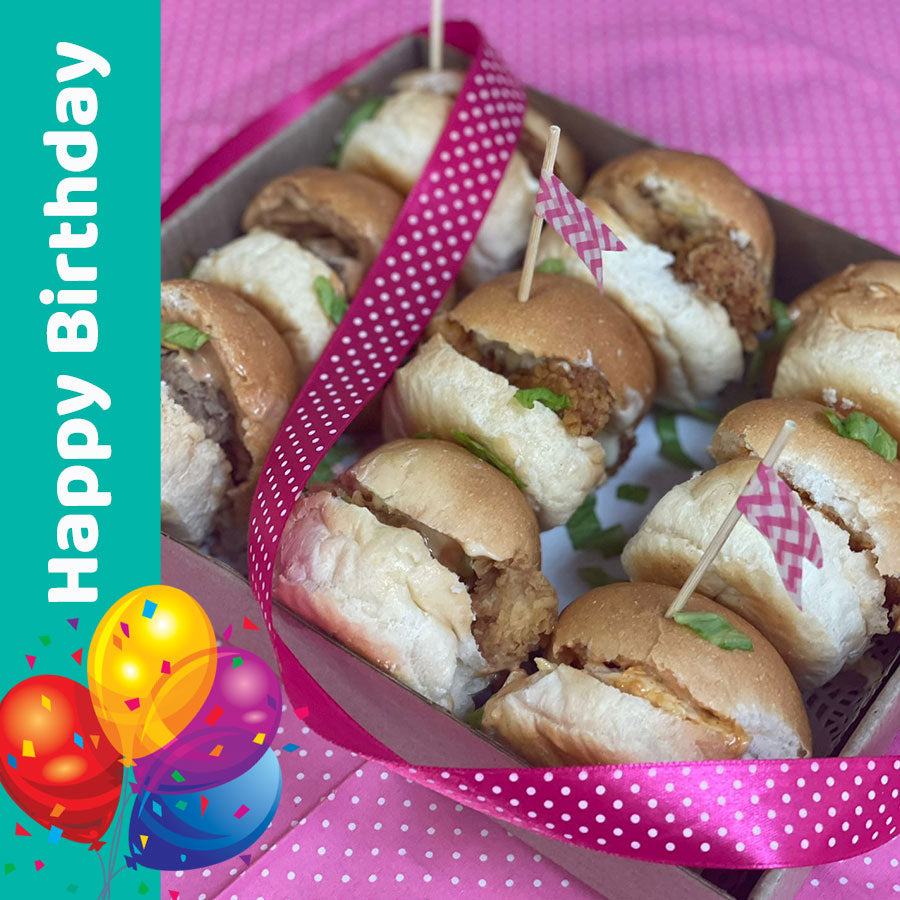 We create a burger box for the class - giving each learner a cocktail burger.Box consist of beef and Tuck In fried chicken cocktail burgers